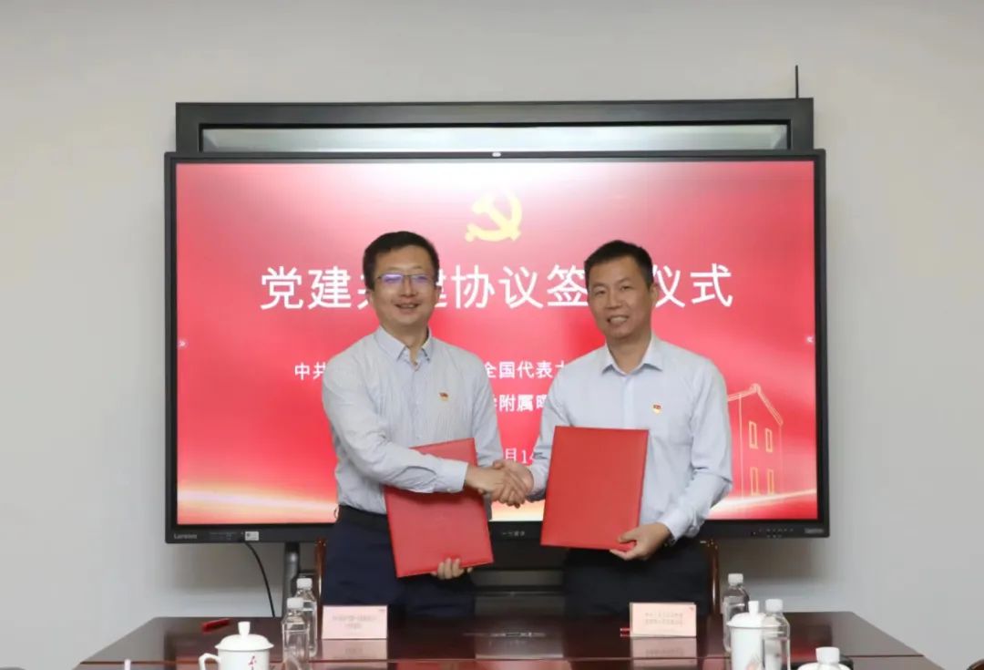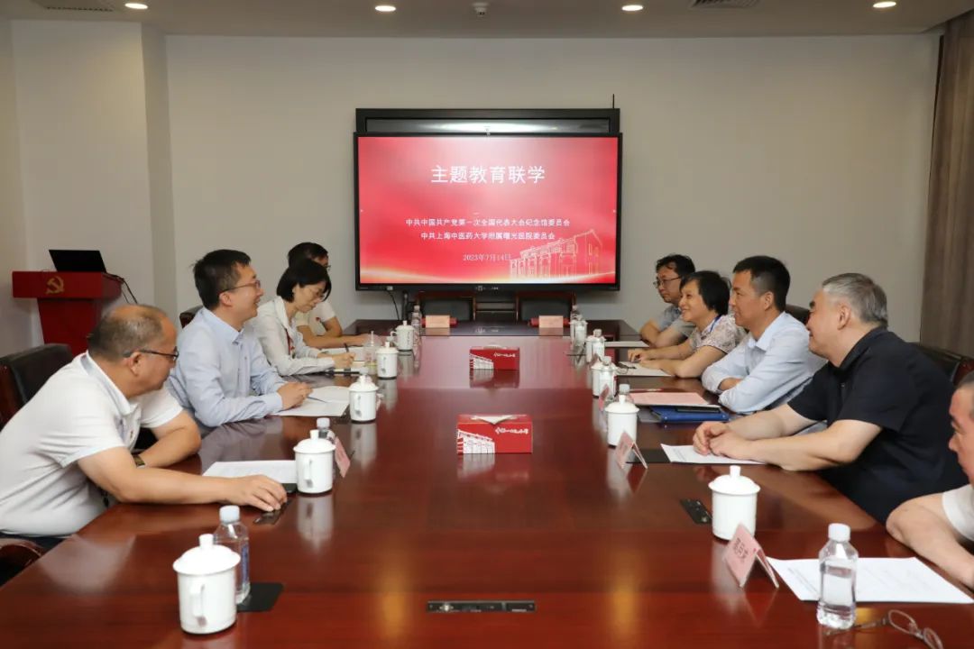 为深入学习贯彻党的二十大精神和学习贯彻习近平新时代中国特色社会主义思想主题教育,深刻理解并牢牢把握“学思想、强党性、重实践、建新功”总要求,不断强化基层党组织的政治功能和服务功能,7月14日,我校附属曙光医院党委与中共一大纪念馆党委开展主题教育联学暨党建共建签约仪式。中共一大纪念馆党委书记、馆长薛峰,党委副书记、纪委书记汤匀,副馆长周峥,副馆长徐云根,曙光医院党委书记周强峰,党委副书记、院长房敏,党委副书记、纪委书记郝微微,党委副书记、副院长高月求,副院长竺炯及双方相关部门负责人等出席。