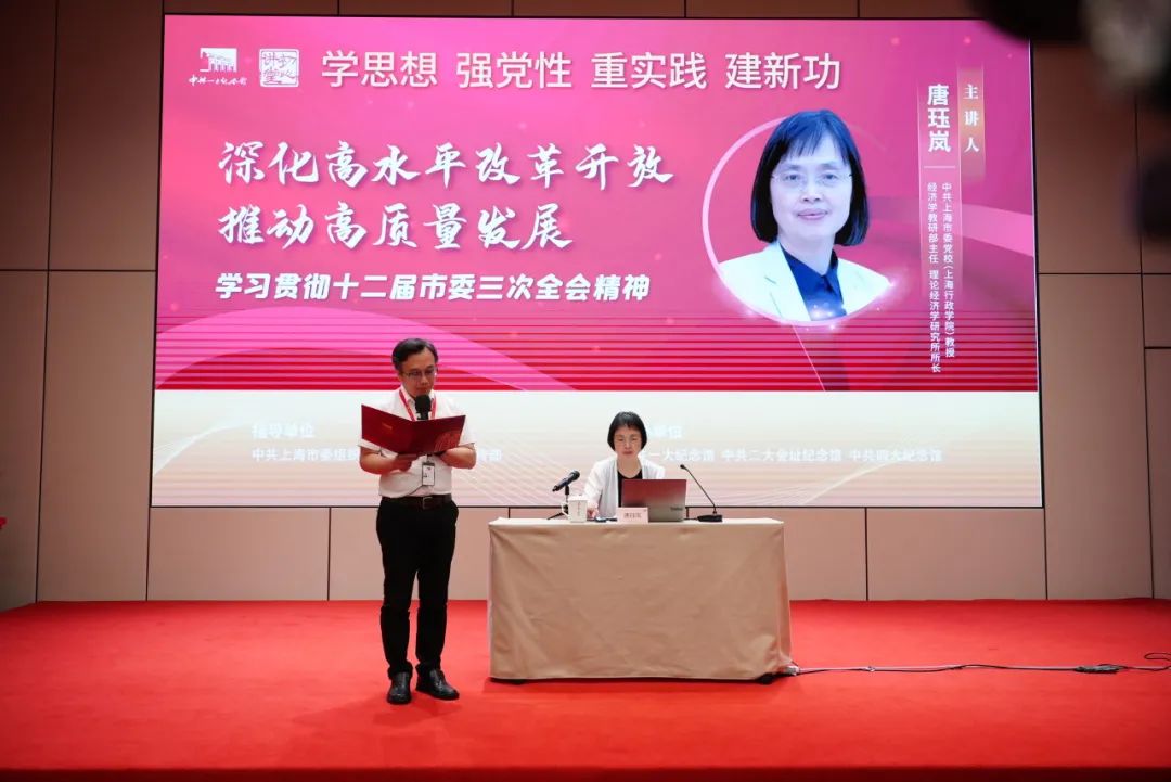 “初心讲堂”是以学习贯彻习近平新时代中国特色社会主义思想为主线,充分利用上海丰富的红色资源和学思践悟新思想的实践资源作为生动教材的党员教育新载体。本次开展的课程由中共上海市委党校(上海行政学院)教授,经济学教研部主任、理论经济学研究所所长唐珏岚担任主讲,讲座主题为《深化高水平改革开放 推动高质量发展——学习贯彻十二届市委三次全会精神》,唐珏岚从重大意义、主攻方向、实践要求三个方面对十二届市委三次全会进行全面解读,并以一系列数据回顾了我国新时代经济建设取得的历史性跃升,分析了目前国内和国际环境形势及应对措施。党课让党员干部深刻认识到要切实增强学习贯彻会议精神的政治自觉、思想自觉和行动自觉,同时,也为医院高质量发展提供新思路和新启发。