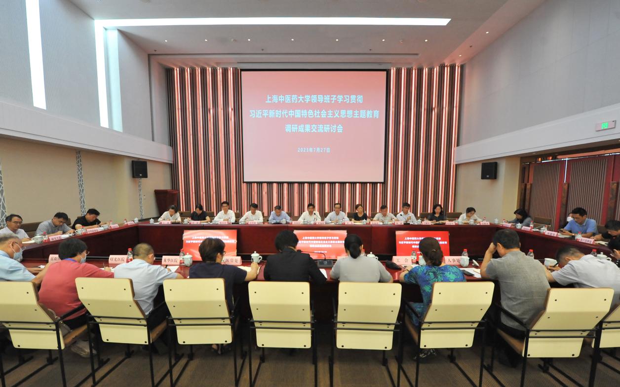 7月27日下午,上海中医药大学领导班子学习贯彻习近平新时代中国特色社会主义思想主题教育调研成果交流研讨会在创新楼一楼会议室召开,校领导班子成员、主题教育领导小组办公室成员、校党政职能部门主要负责同志及相关二级单位党政负责人参加会议。市委第十八巡回指导组副组长李国荣、组员吴黛灵到会指导。会议由校党委书记、主题教育领导小组组长曹锡康主持。