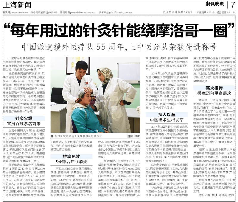 新民晚报报道--中国派遣援外医疗队55周年,上中医分队获先进称号