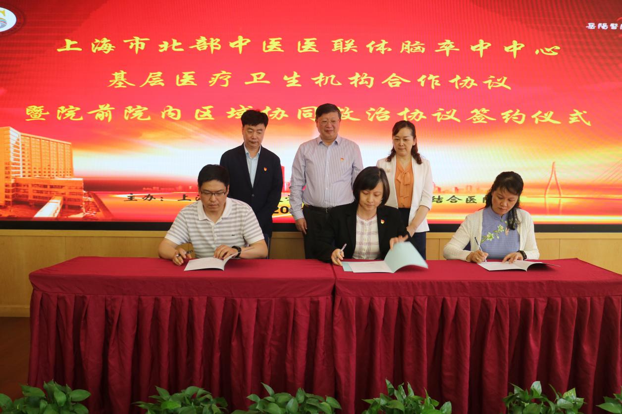 5月25日,上海市北部中医医联体脑卒中中心基层医疗卫生机构合作协议暨院前院内区域协同救治协议签约仪式在附属岳阳中西医结合医院举行。上海市虹口区卫健委主任张伟胜、杨浦区卫健委副主任刘辉、上海市医疗急救中心急救部部长董钧及9家社区医疗机构单位领导出席。岳阳中西医结合医院院长周嘉、副院长郝微微、卒中中心管理委员会委员参加。会议由医院医务处处长汤杰主持。