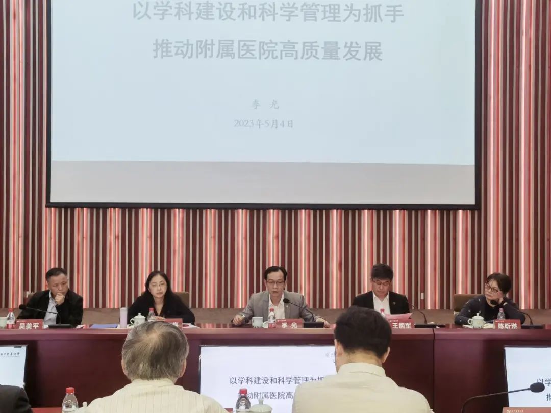 校长季光、副校长王拥军和相关职能部门负责人、各附属医院主要负责人等出席会议。会议由王拥军主持。