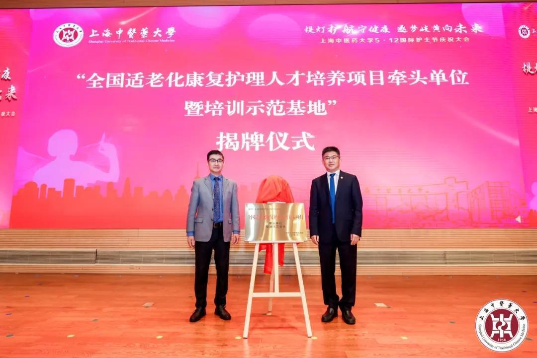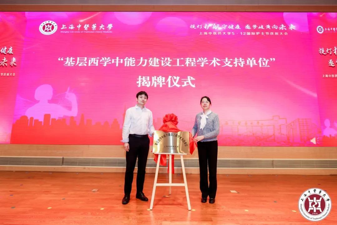 庆祝大会上,举行了“基层西学中能力建设工程学术支持单位”揭牌仪式。我校将在国家卫健委基层卫生健康司指导下,配合国家卫健委能力建设和继续教育中心,扩大中医护理技术在基层医疗机构的推广和应用,为基层西学中能力建设工程带教基地输送优质中医护理教学资源,同时举办全国中医护理技能大赛。