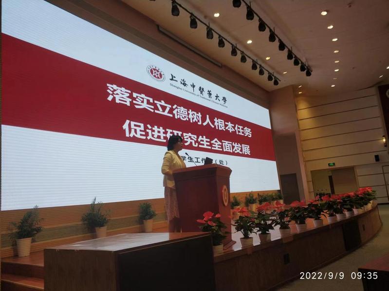 2022年上海中医药大学研究生新生入学教育在校召开,本次会议围绕学位与研究生培养教育工作,面向全体1200余人研究生新生进行线上线下相结合的学前教育专场。研究生院常务副院长刘胜、学研工部部长沈漫、研究生院副院长葛芳芳及研究生院全体教工参加本次大会。