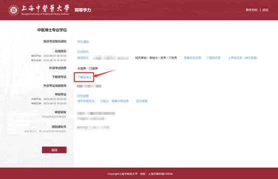 三、准考证:3月4日16:00以后可以登录报名系统自行下载,https://yjsjw.shutcm.edu.cn/gsapp/sys/tdxlxsdappshutcm/login.do,具体见下图