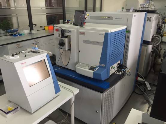 2、仪器介绍:Thermo公司Orbitrap Elite轨道阱组合质谱仪,配备Nano液相,具有高达100,000 FWHM以上的分辨率,而且还实现了40 Hz的扫描速率,提供了高分辨率、高质量精度的性能优势
