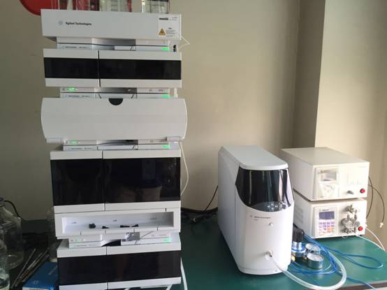 2、仪器介绍:Agilent系列1100,1200,1260高效液相色谱仪,包括在线脱气机、二元四相泵、自动进样器、柱温箱与可变波长检测器,可配备蒸发光散射检测器(ELSD)