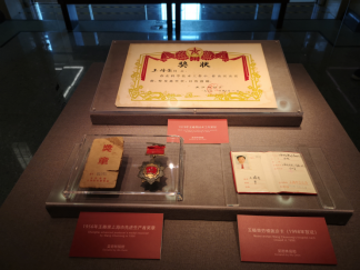 二楼近期开设的的特展为《众心筑梦70年——海上揽胜长卷暨市民捐赠展》,反映了新中国成立70年来上海在各行各业劳动者的共同努力下所发生的沧桑巨变。此次展出的展品均来自于市民的捐赠。展品中既有早期中国共产党章、上世纪生活中常见的老物件;也有不同行业劳动模范和先进工作者的荣誉奖章证书等。