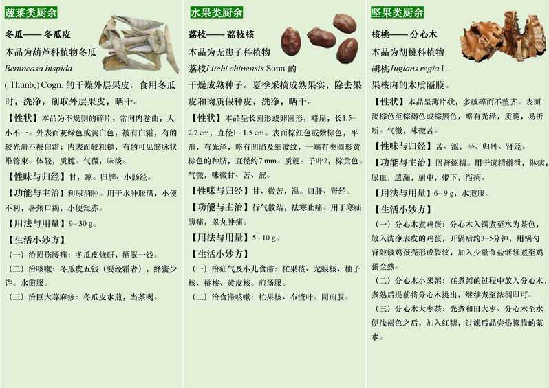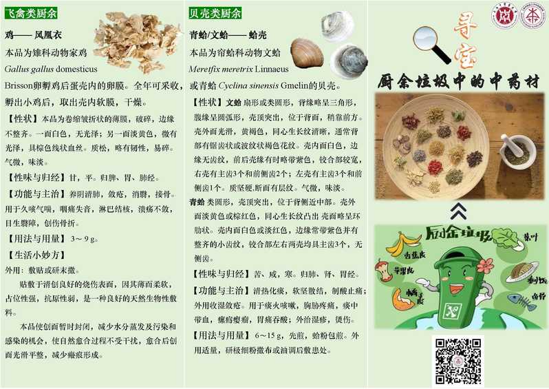 “厨余里的中药材”图文并茂的展示了在日常生活的厨余垃圾中含有的常见中药材,比如冬瓜皮、荔枝核、分心木(为核桃果核内的木质隔膜)、凤凰衣(鸡蛋壳内卵膜)等,并从性状、性味归经、功能主治、用法用量、生活小妙方等方面向民众介绍了这些中药的知识和再利用方法,普及中药学知识,倡导“厉行节约,反对浪费”的观念。艾灸文化和香囊知识模块采用邀请观众亲手进行艾条、香囊制作的方式,使大家亲身感受中医药文化的魅力。